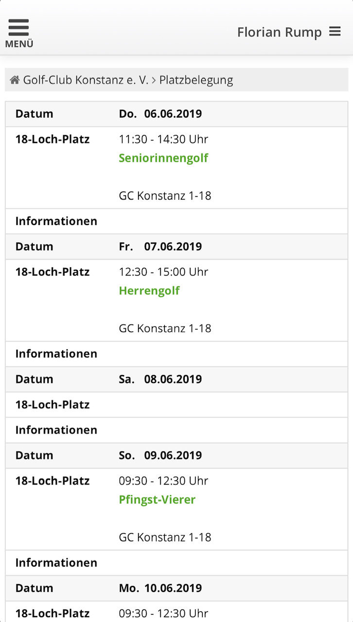 - Aktuelle Platzbelegung im Golf-Club Konstanz e.V.