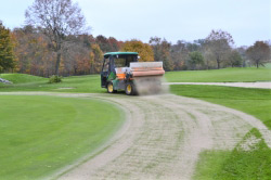 - alle 2 Wochen Topdressen mit Quarzsand, dient zur Verhinderung des Filzaufbaus, macht härtere und treue Greens