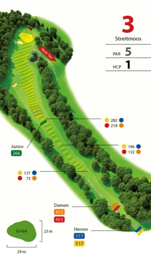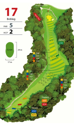 (Herren gelb 510 m / blau 454 m – Damen rot 427 m / orange 387 m) Par 5