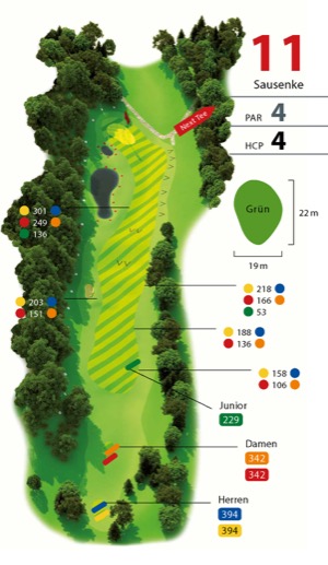 (Herren gelb 323 m/ blau 305 m - Damen rot 266 m / orange 247 m) Par4