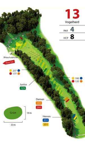 (Herren gelb / blau 364 m – Damen rot / orange 301 m) Par 4