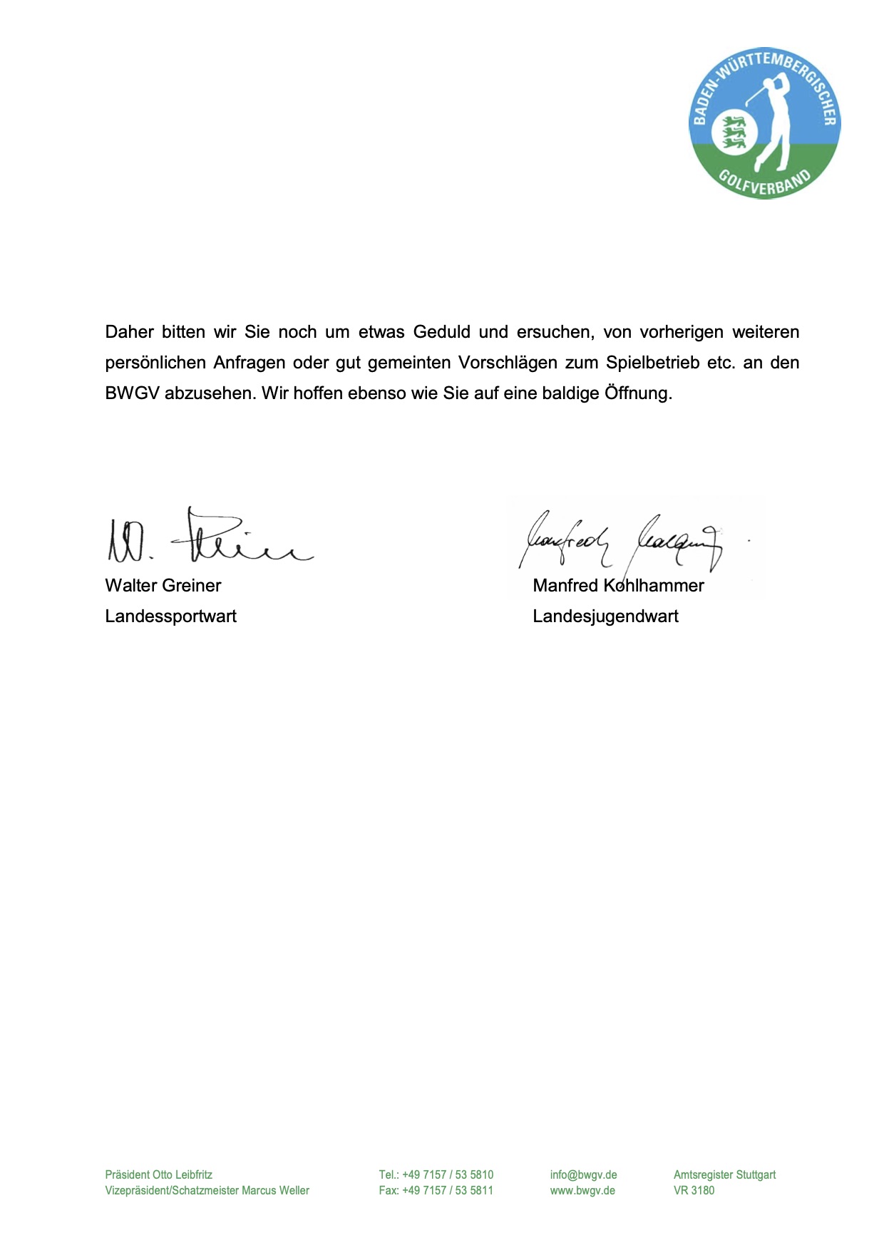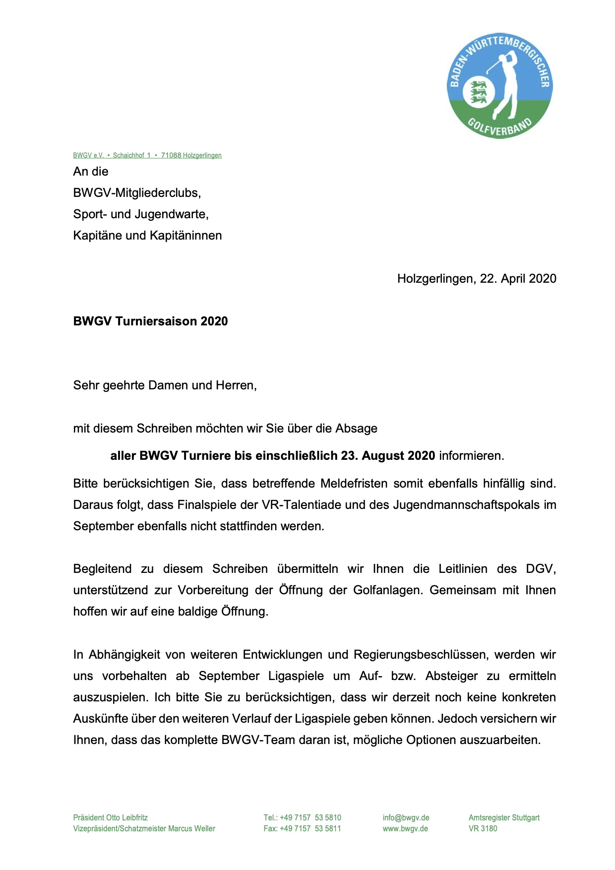 Golfanlage geöffnet.