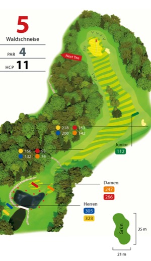 (Herren gelb 465 m / blau 432 m– Damen rot 395 m / orange 367 m Par 5