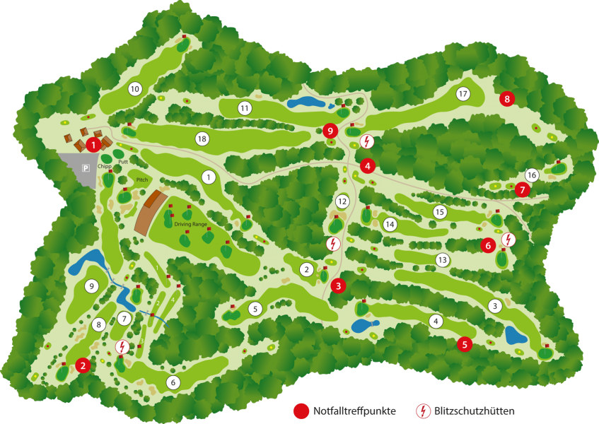 (Herren gelb 510 m / blau 454 m – Damen rot 427 m / orange 387 m) Par 5
